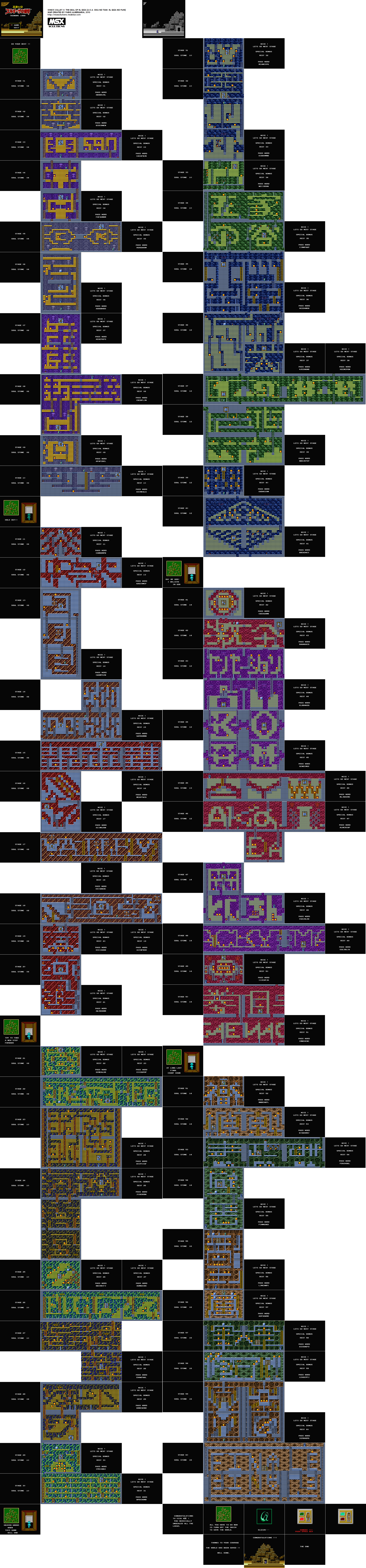 전체적인 맵은 [이 링크]를 들어가시면 큰 이미지로 볼 수 있습니다. 맵 배열은 좌측 열 1-30, 우측 열 31-60 피라미드입니다. (맵 이미지 출처: http://msxsolutions.msxblue.com/)