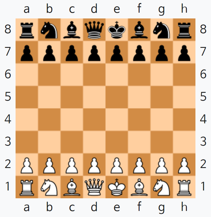 그리고 최후방에서 1칸 앞(백은 2랭크, 흑은 7랭크)에는 모두 폰으로 채웁니다.